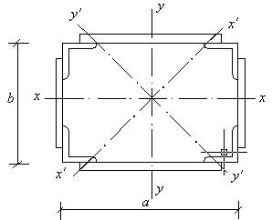 井架的y1-y1軸和x1-x1軸截面總慣性矩: